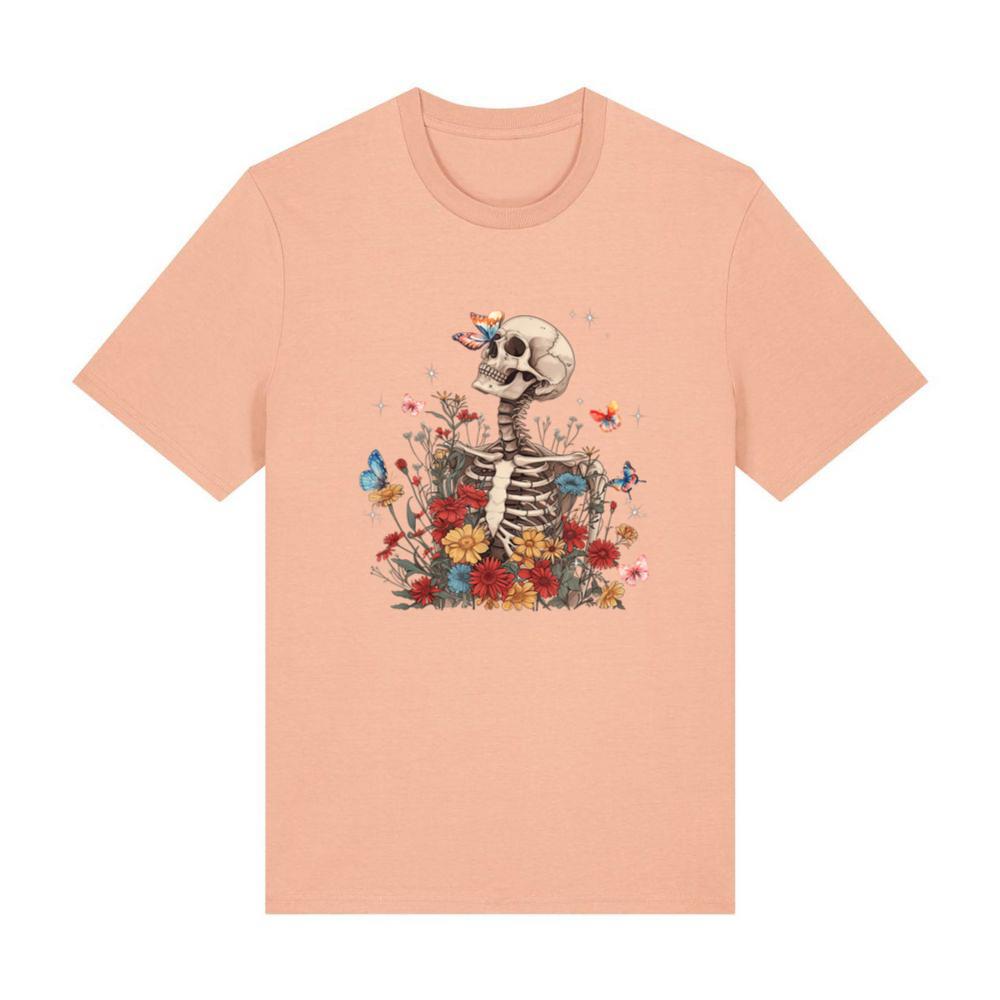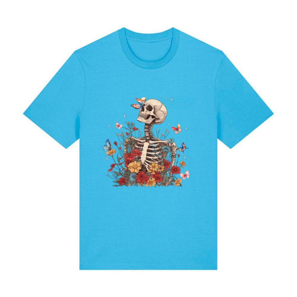 Skeleton Flowers Butterfly Floral Halloween Men Women T-Shirt