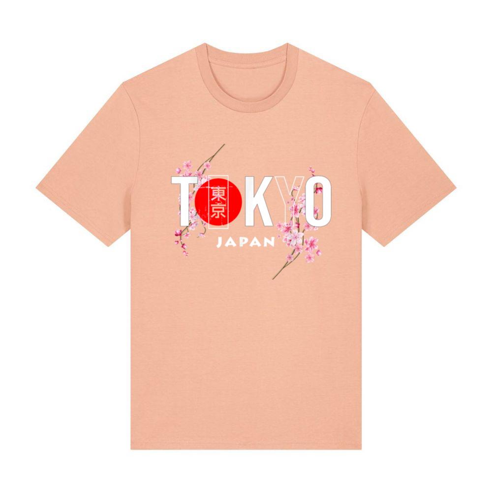 TOKYO & JAPAN TEXT WITH CALLIGRAPHY INSERT + SAKURA FLOWERS T-Shirt